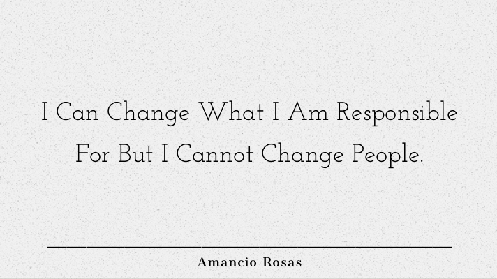 The Lesson I Have To Learn Now Is: I Can Change What I Am Responsible For But I Cannot Change People.